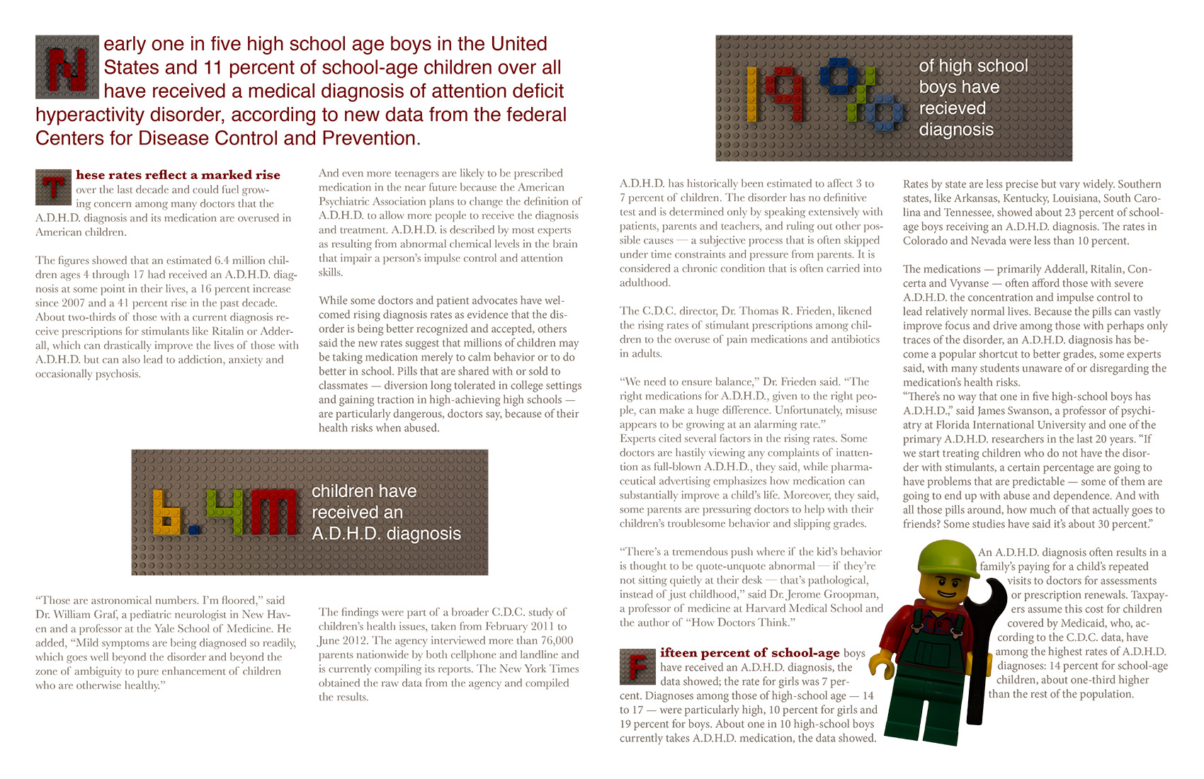 Typography class found type project. Using legos I created the type to accompany a spread for an article.
